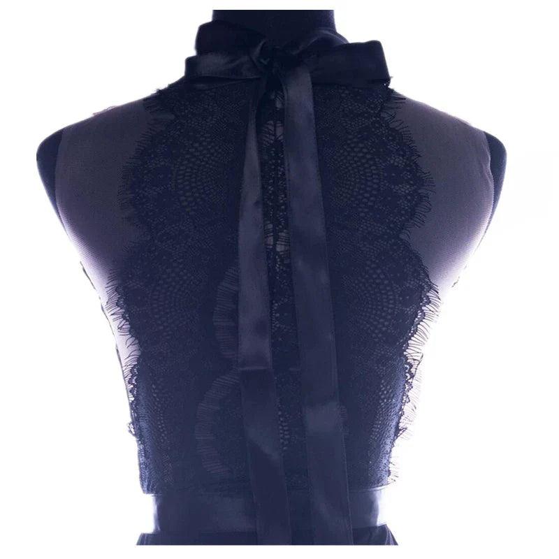 Ribbon Lace Patchwork Vintage Black Dress Retro Elegance