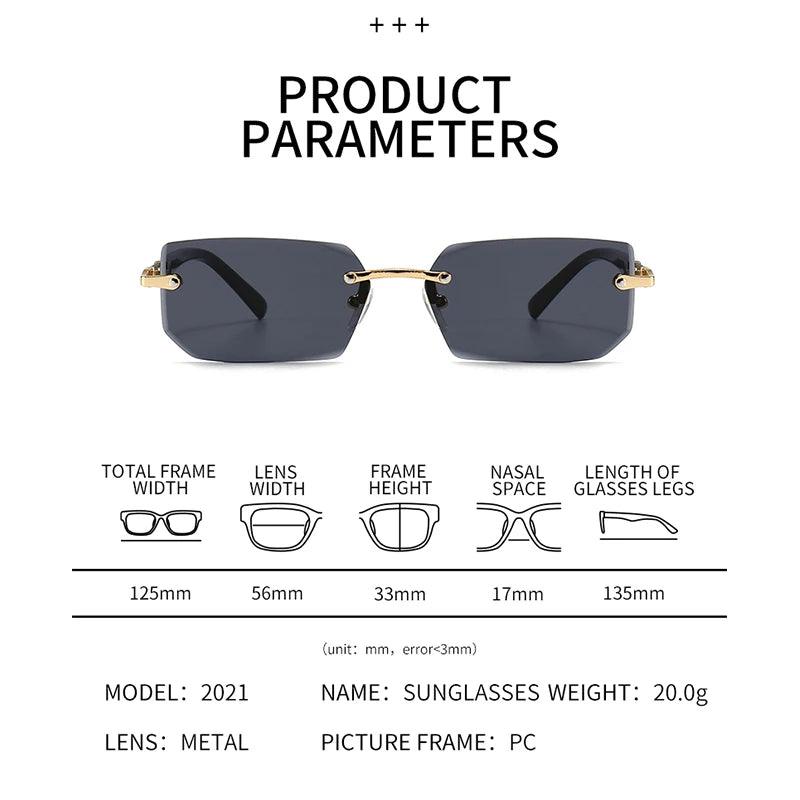 Find your perfect pair by searching these : Trendy Rimless Sunglasses, Rectangle Sunglasses, Stylish Sunglasses, Unisex Sunglasses, Fashionable Sunglasses, UV Protection Sunglasses, Lightweight Sunglasses, Gradient Lens Sunglasses, High-Quality Sunglasses, and Durable Sunglasses.