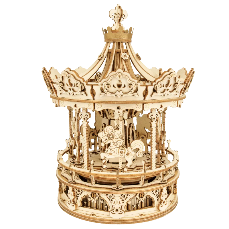 Transform your leisure time into a magical journey with the Robotime 3D Wooden Puzzle 336pcs Rotatable DIY Carousel Toy. Gather your loved ones, dive into this captivating project, and create lasting memories together. This intricate puzzle stimulates creativity, enhances fine motor skills, and improves problem-solving abilities.