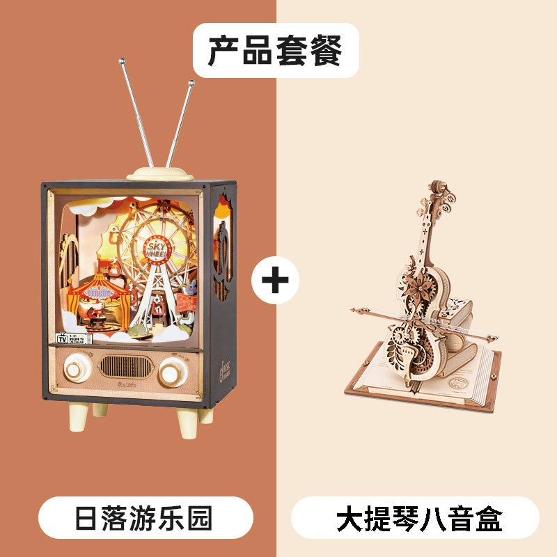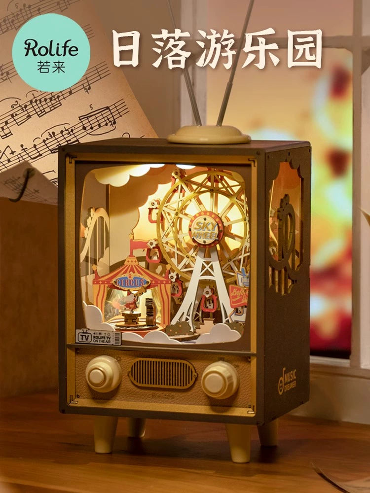 Discover the charm of the Rolife Ruolai Sunset Amusement Park Music Box Wooden Model today and let your creativity shine!