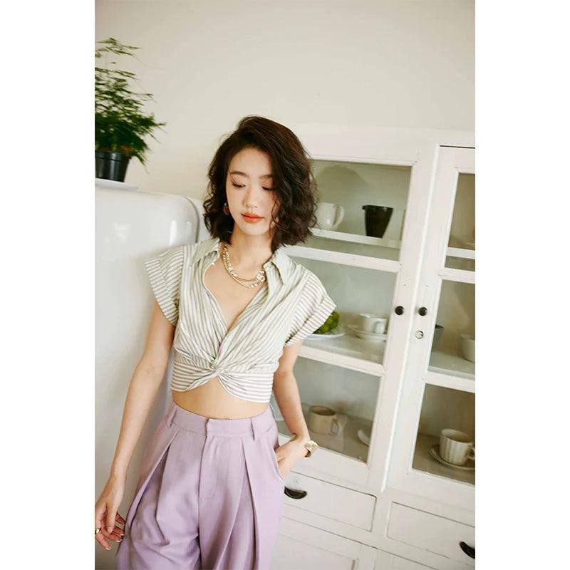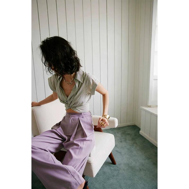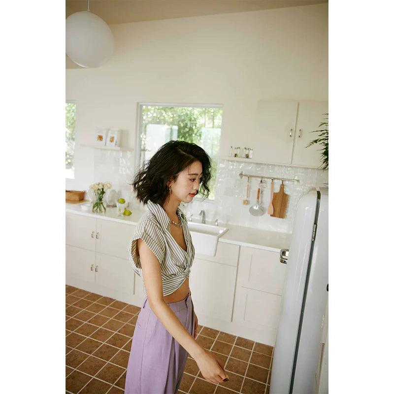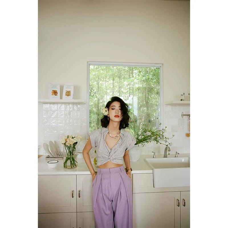 Rosebanks Purple Striped V-Neck Shirt Chic Summer Style