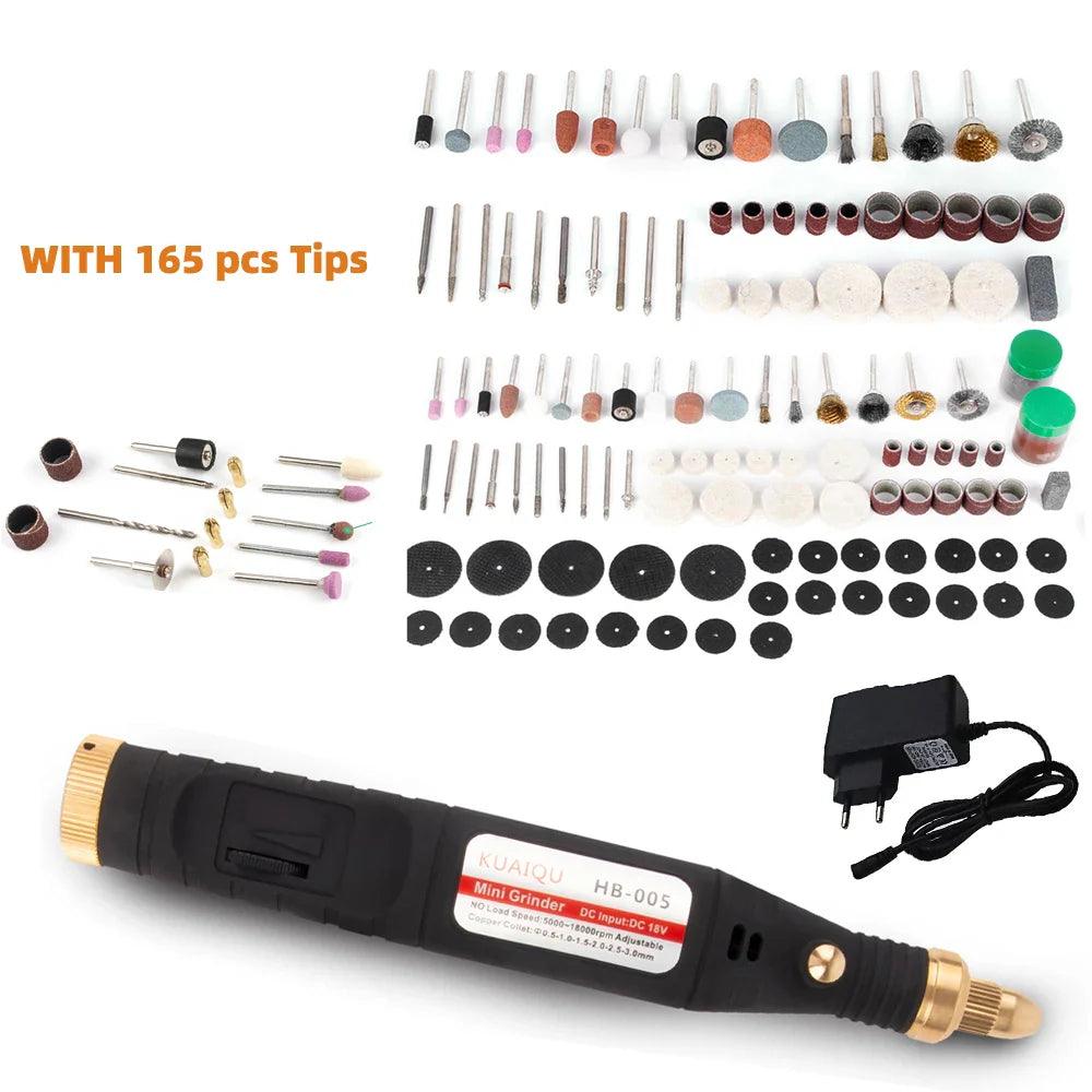 • Comprehensive Accessory Set: Comes with 165 tips and attachments for cutting, grinding, polishing, and engraving.