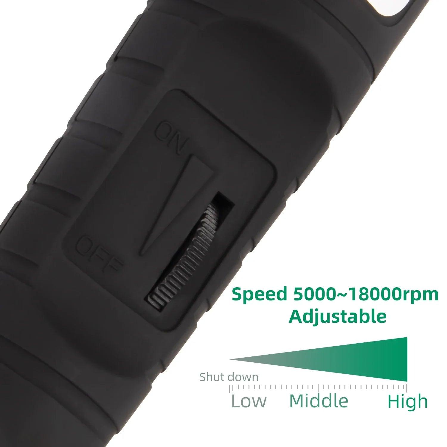 • Adjustable Speed Control: Choose from 5 speed settings, ranging from 5000 to 18000 RPM, ensuring optimal performance on all surfaces.