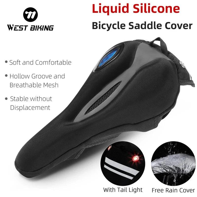 Silicone Gel Memory Foam Bicycle Seat Cover with Safety Taillights