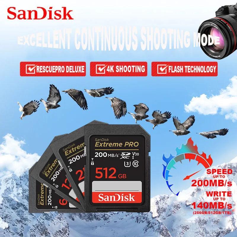 A: This memory card offers Class 10 speed, fast read/write performance, and capacities up to 512GB, specifically to accelerate photo bursts and smooth video recording, all with the assurance of an authentic SanDisk warranty for camera enthusiasts.