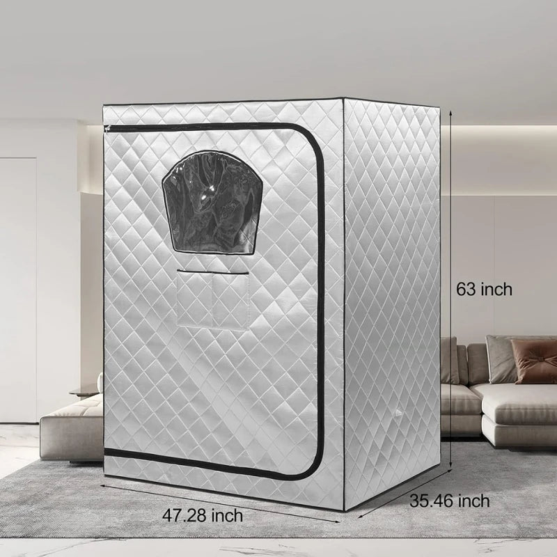 Sauna Tent for Home: Transform your home into a luxurious spa retreat with the 2 Person Sauna Tent Full Body Portable Steam Saunas for Home. Designed for ultimate relaxation, this indoor sauna steam room offers a spacious 47.24" x 35.43" x 63" area, comfortably accommodating up to two people. Enjoy the soothing benefits of steam therapy anytime, anywhere—just connect it to your steamer (not included) and unwind in style.
