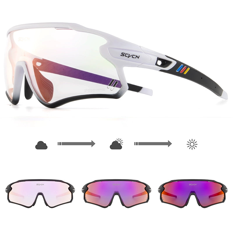 Discover the ultimate in outdoor eye protection with Scvcn Color Changing Glasses for Running and Biking. Perfectly engineered for sports enthusiasts, these glasses adapt effortlessly to changing light conditions, enhancing your visibility whether you're running on sunlit trails or biking through shaded paths.