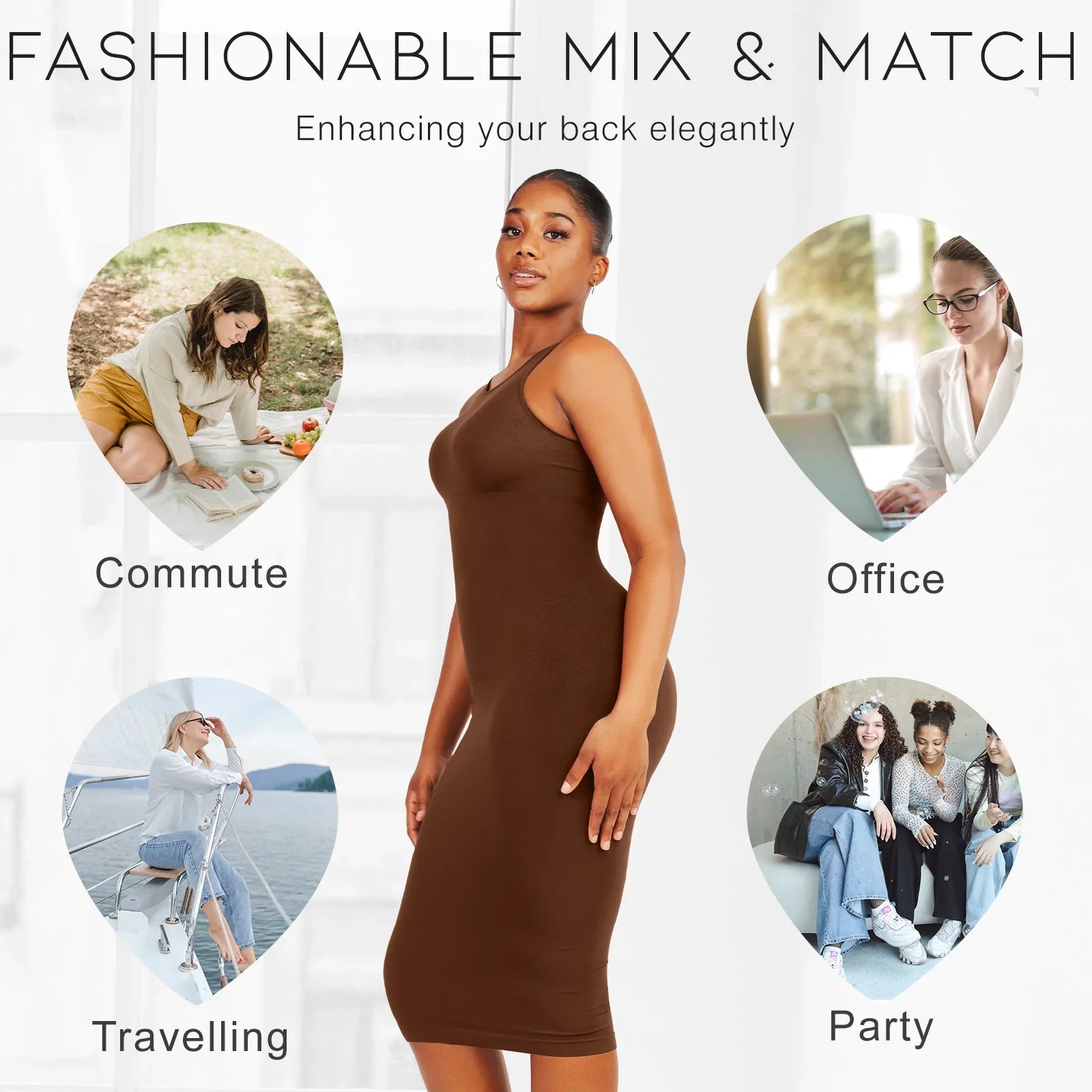 Elevate your wardrobe with our shapewear dress. Not only does it create a smooth and flattering silhouette, but it also enhances your confidence. With wire-free support and durable non-woven fabric, you can enjoy exceptional comfort all day long, seamlessly transitioning from casual lounge wear to a chic evening outfit.