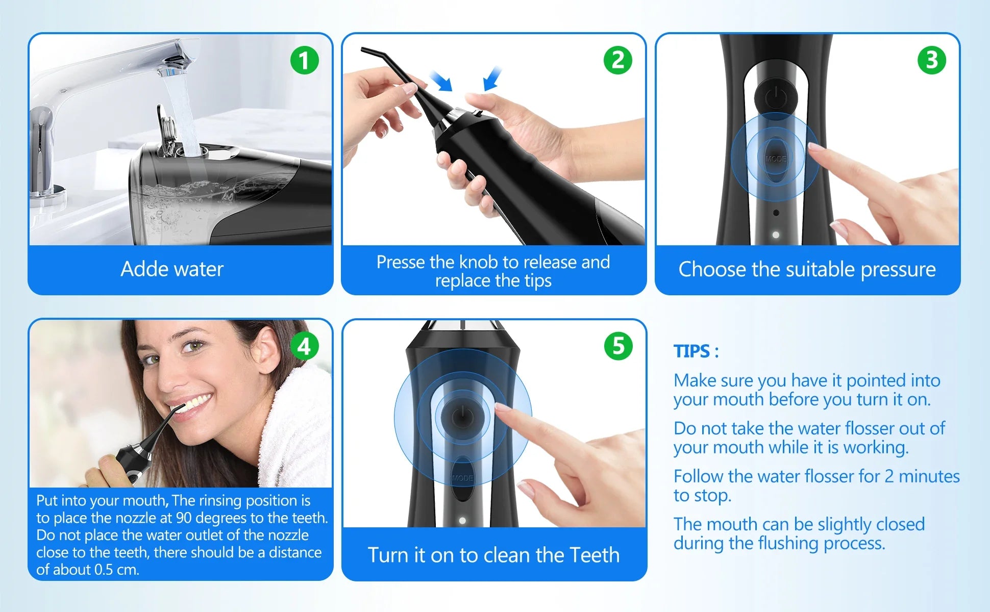 This water flosser is designed with user-friendliness in mind, featuring a sleek design that will complement any bathroom decor. With its 5 cleaning modes, you can customize your experience to fit your individual needs.