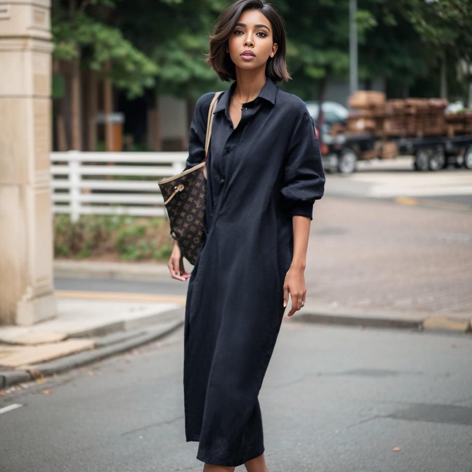 This Luxury Linen Dress is perfect for both casual and formal settings. Its chic silhouette and sophisticated design make it ideal for the modern woman. Whether you're heading to a brunch or an evening event, this dress adapts beautifully.