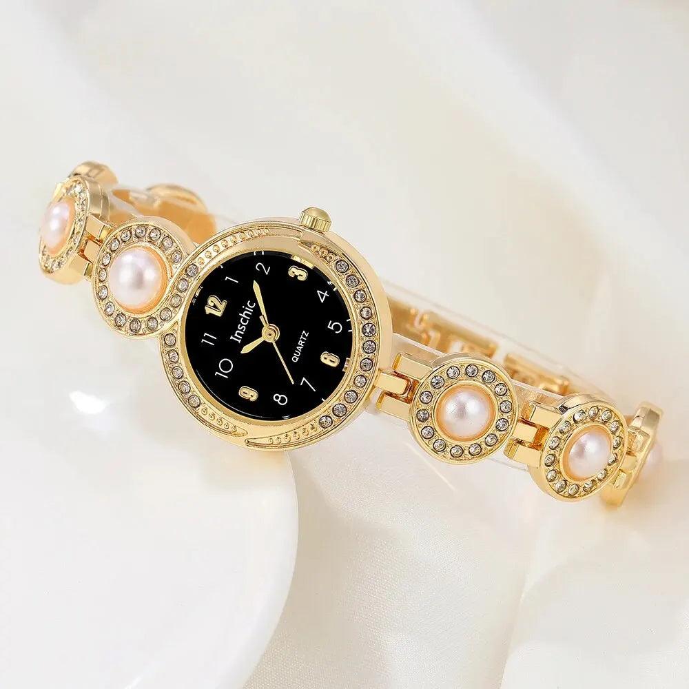 Heart Jewelry Set & Luxury Watch Stylish Rhinestone Accessories