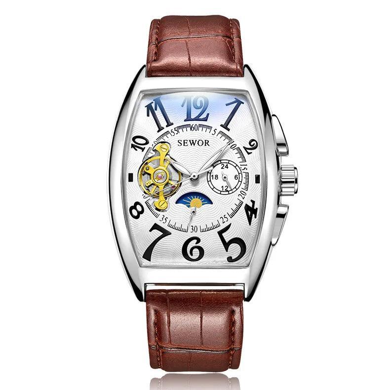 Elevate your style with the Gold Tourbillon Moon Phase Watch Elegant Luxury Timepiece, a stunning fusion of sophistication and functionality. Designed for the modern gentleman, this exquisite watch will not only enhance your attire but also keep you punctual and organized.
