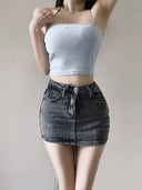 Step up your fashion game with our Vintage Blue High Waist Denim Skirt Sexy Chic Short Dress. This stunning piece combines vintage charm with a modern sexy twist, making it a must-have for your wardrobe!