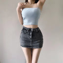 Vintage Blue High Waist Denim Skirt Sexy Chic Short Dress