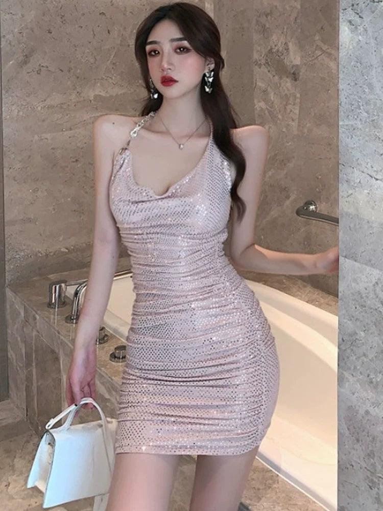 Disco Jumping Halterneck Dress: European Style Confidence