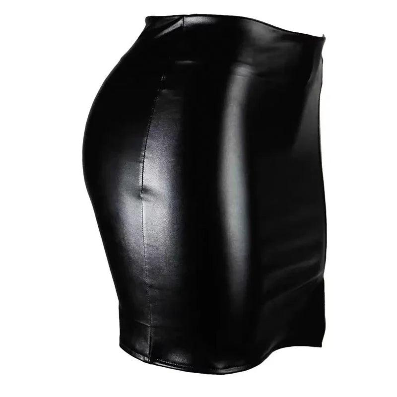 : 1. Black leather skirt, 2. Nightclub fashion, 3. Women's skirts, 4. Trendy skirts, 5. Chic outfits, 6. High waist skirt, 7. Fashionista clothing, 8. Party attire, 9. Stylish skirts, 10. Sleek skirt designs.