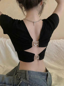 Upgrade your wardrobe with our V-neck Open Back Top: Stylish Chic Party Apparel Online. This captivating top features a bold V-neck design paired with a stunning open back detail, guaranteeing you’ll make a statement at every event. Whether it's a birthday party or a summer soirée, this chic piece is your go-to for turning heads!