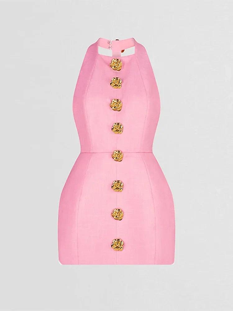 Elegant Pink Halter Backless Dress Stylish Lady Party Attire