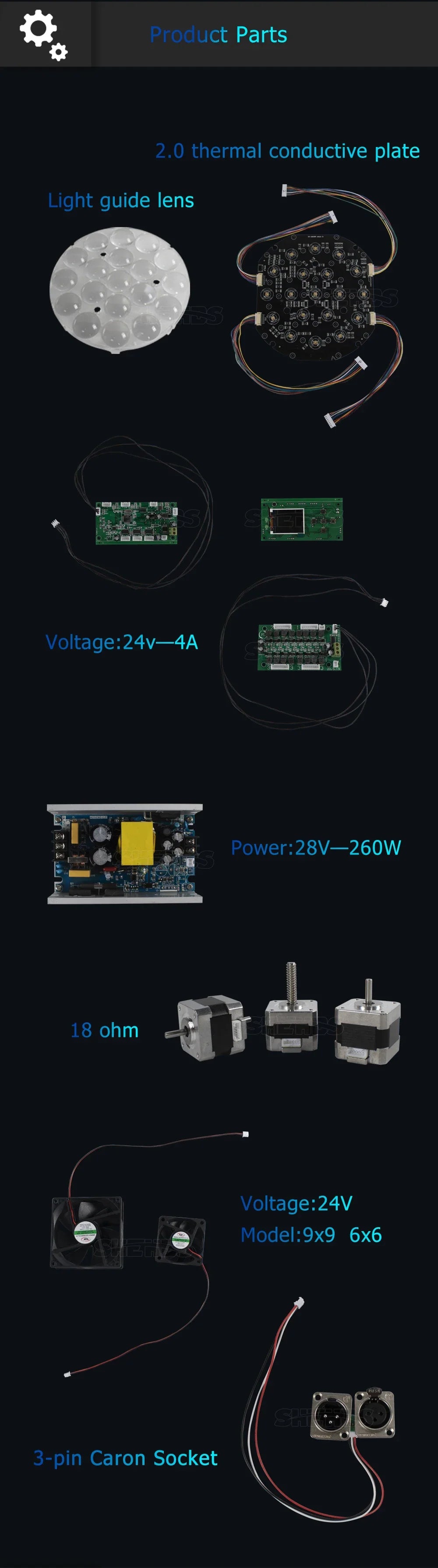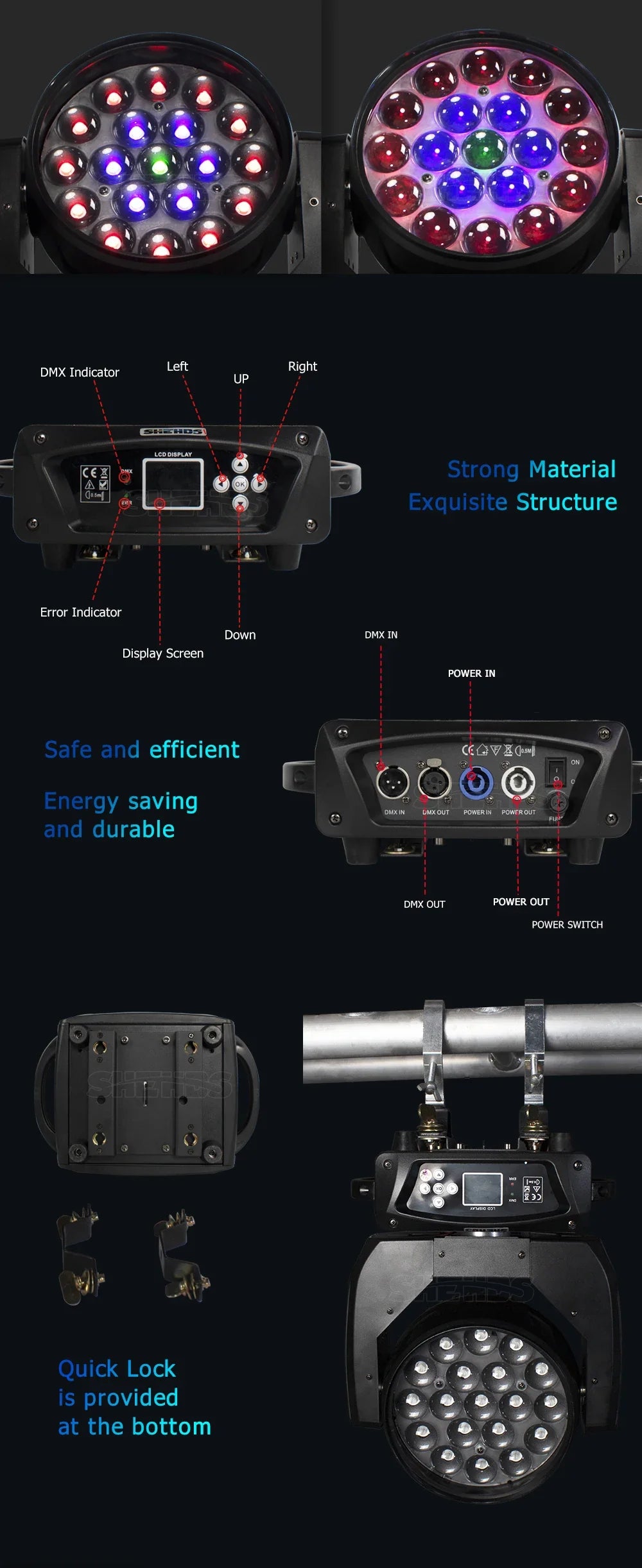 • Versatile Modes: Operates in DMX512, Auto Run, Sound action, Strobe, Stand Alone, and Master/Slave modes.