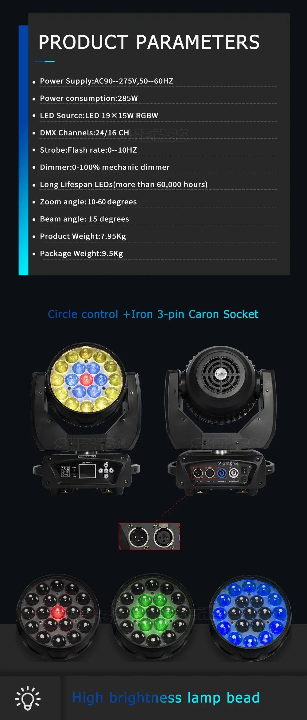 Discover the potential of professional lighting with the SHEHDS 4PCS Beam Wash 19x15W RGBW Zoom Moving Head Lighting. Order now and transform your events with stunning visual effects!