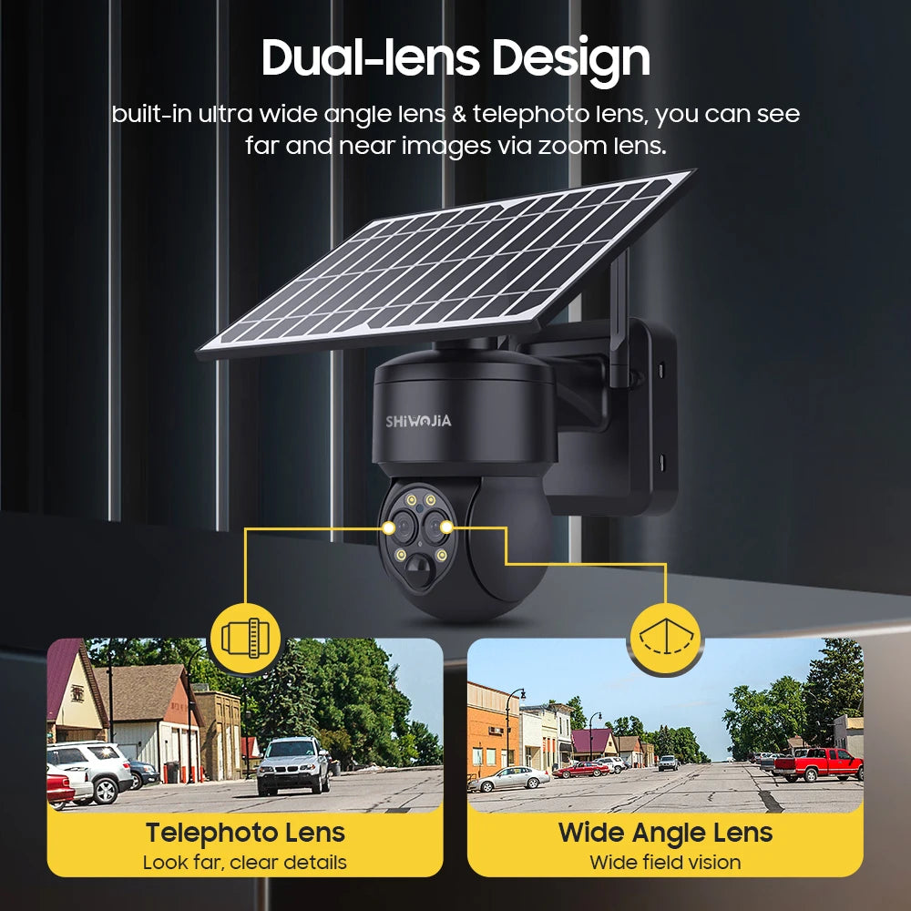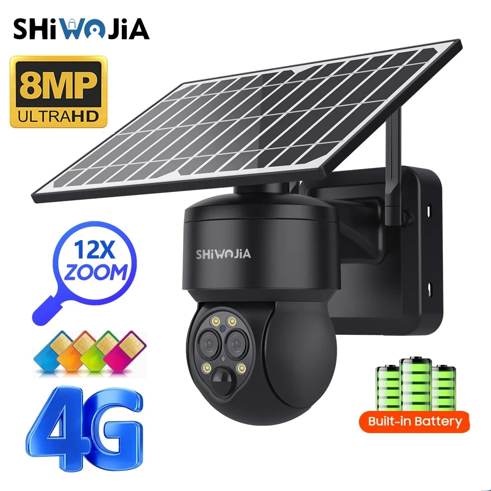 SHIWOJIA 4G SIM Solar Camera WIFI 6W Dual Lens 12X ZOOM