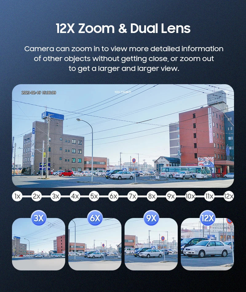 • 12X Zoom: Get crystal-clear images and videos from a distance with exceptional zoom capabilities.