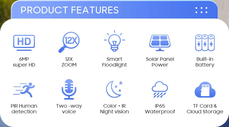 Discover the future of home security with the SHIWOJIA 6MP Solar Camera 4G Sim Card Outdoor 12X Zoom. This state-of-the-art surveillance camera is designed to provide unparalleled functionality and peace of mind, ensuring your outdoor areas are always monitored.