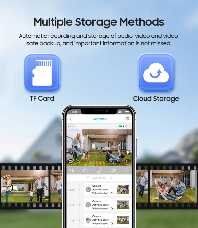 • Cloud Storage: Keep your footage safe and secure with support for a maximum 128G TF card.
