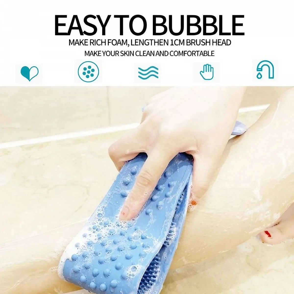 Why settle for ordinary when you can elevate your bath routine with the Silicone Bath Towel Massage Bath Brush Long Strip for Back? Indulge in a bathing ritual that combines deep cleansing with relaxation.