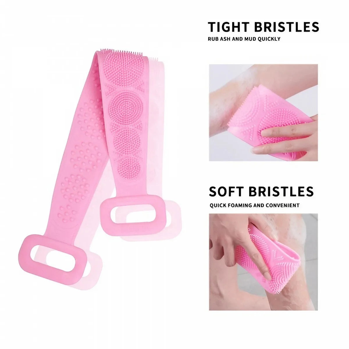• Double-Sided Bath Brush: One side features soft bristles for gentle cleansing, while the other provides an invigorating massage.