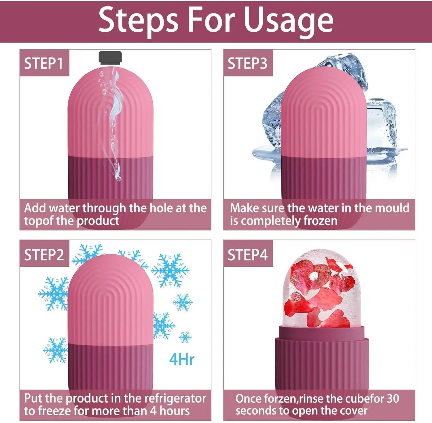 Using the Silicone Ice Face Roller is a breeze. Simply fill the roller with water, freeze for over 4 hours, and apply to your skin in gentle circular motions. Incorporate it into your daily routine to unveil a radiant, youthful glow!