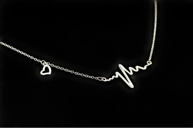 Simple Wave Heart Necklace Chic Ecg Pulse Charm Pendant