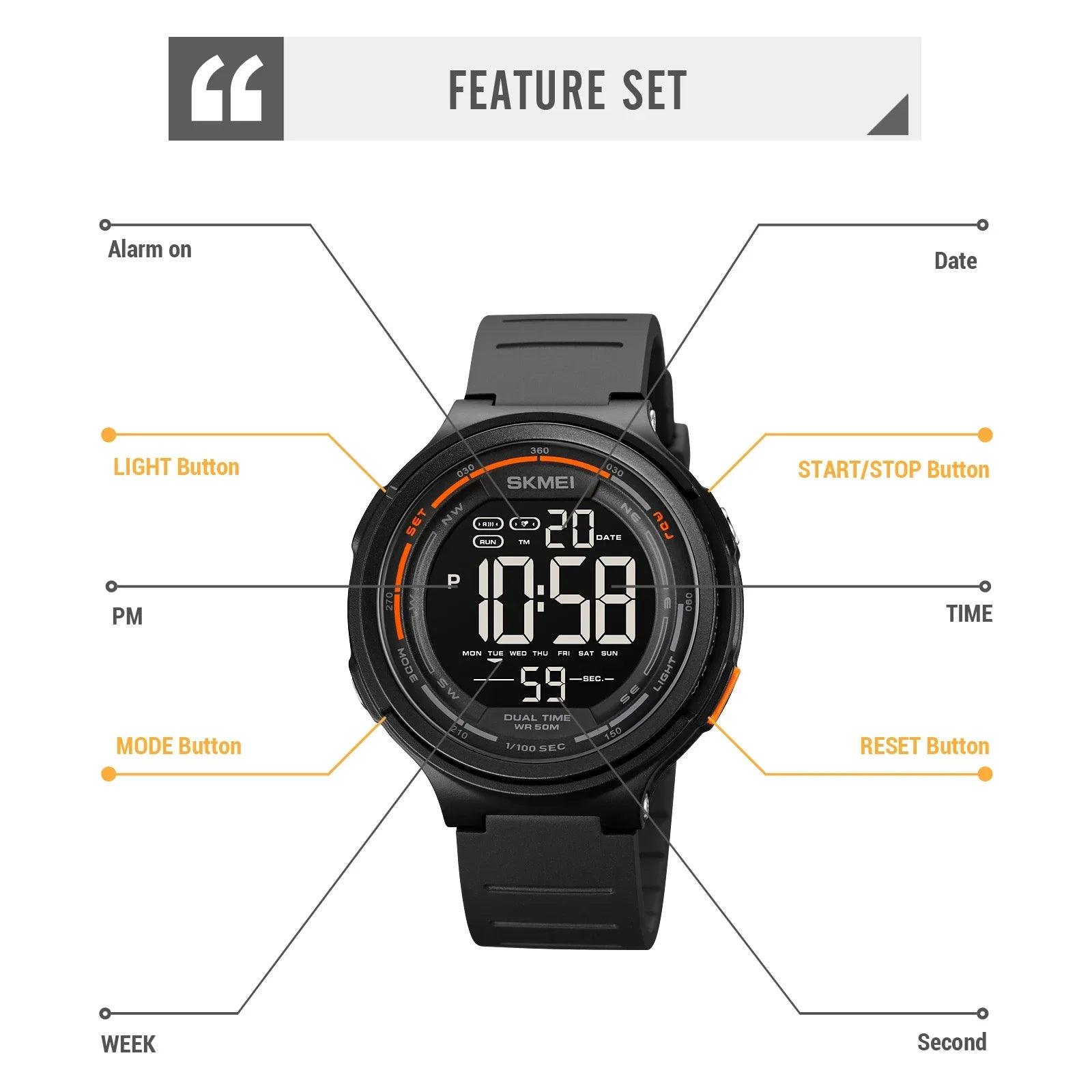 With its comprehensive features and stylish design, the SKMEI Men's LED Sports Watch empowers you to embrace your active lifestyle with confidence. Whether you're hitting the gym, exploring the outdoors, or tackling daily errands, this watch is your ideal companion.