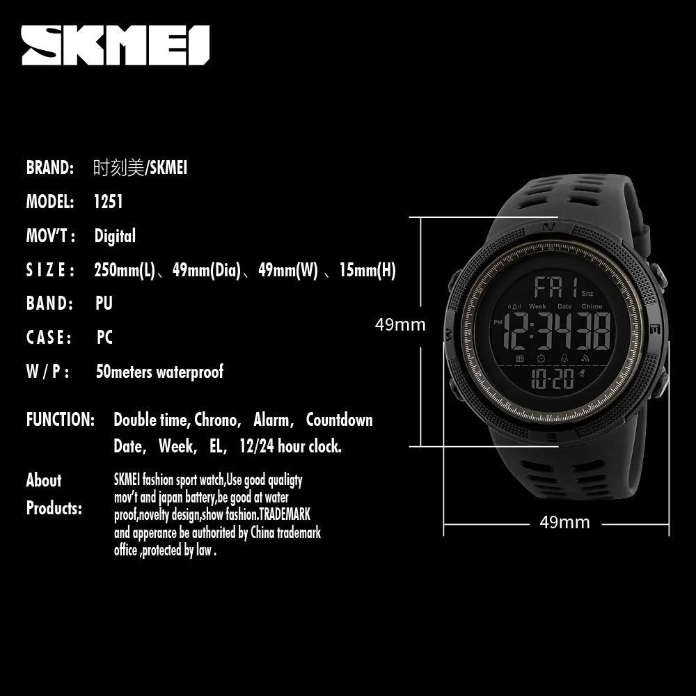 Featuring an impressive water resistance of 5Bar, the SKMEI Men's Waterproof Sports Chronograph Watch Stylish Timepiece is suitable for swimming and various water sports. Just remember to avoid pressing the buttons underwater!