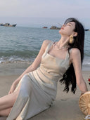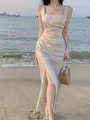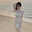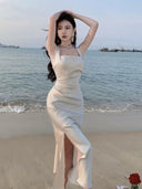 Step into elegance with the White Satin Sling Dress: Chic Event Wear for Women. This stunning piece is expertly designed for the contemporary woman who values both style and comfort. Featuring a luxurious satin fabric and a flattering high waist, it's the quintessential choice for all your special moments.