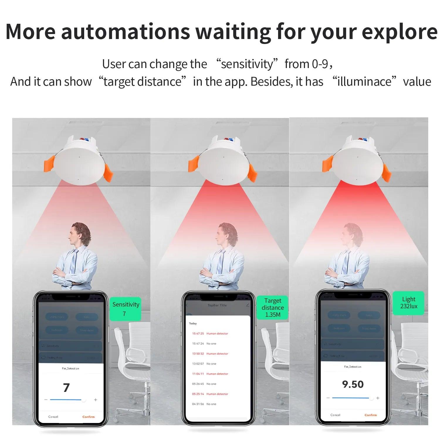 • Customizable Settings: Adjust sensitivity, detection range, hold time, and detection latency to reduce false alarms and enhance performance tailored to your lifestyle.
