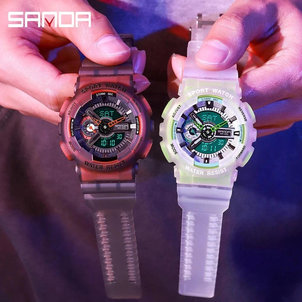 Sports Watch Men's Dual Display Tech Fluorescent Design