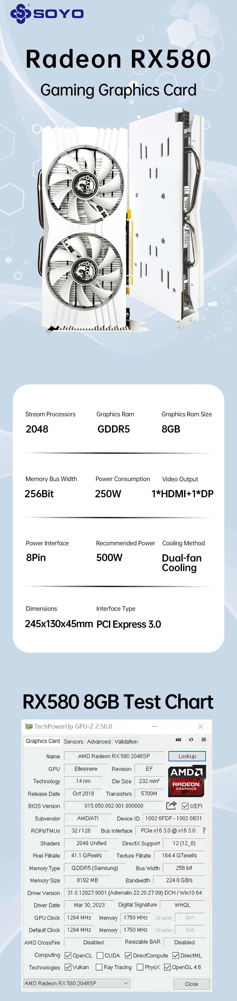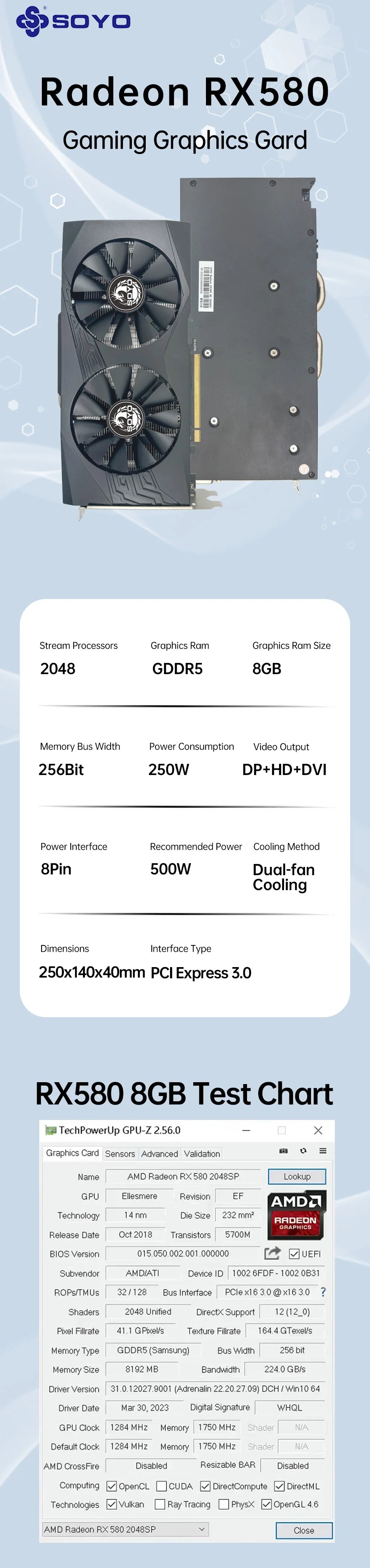 Specifications of the Soyo Graphics Cards Radeon RX580