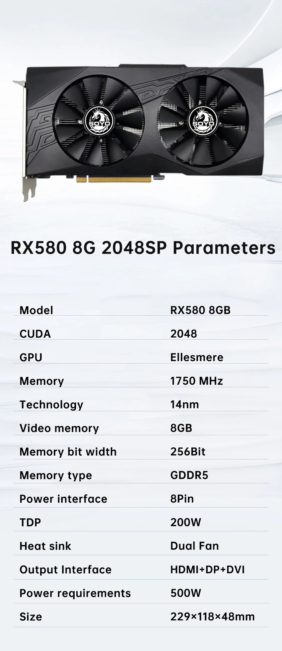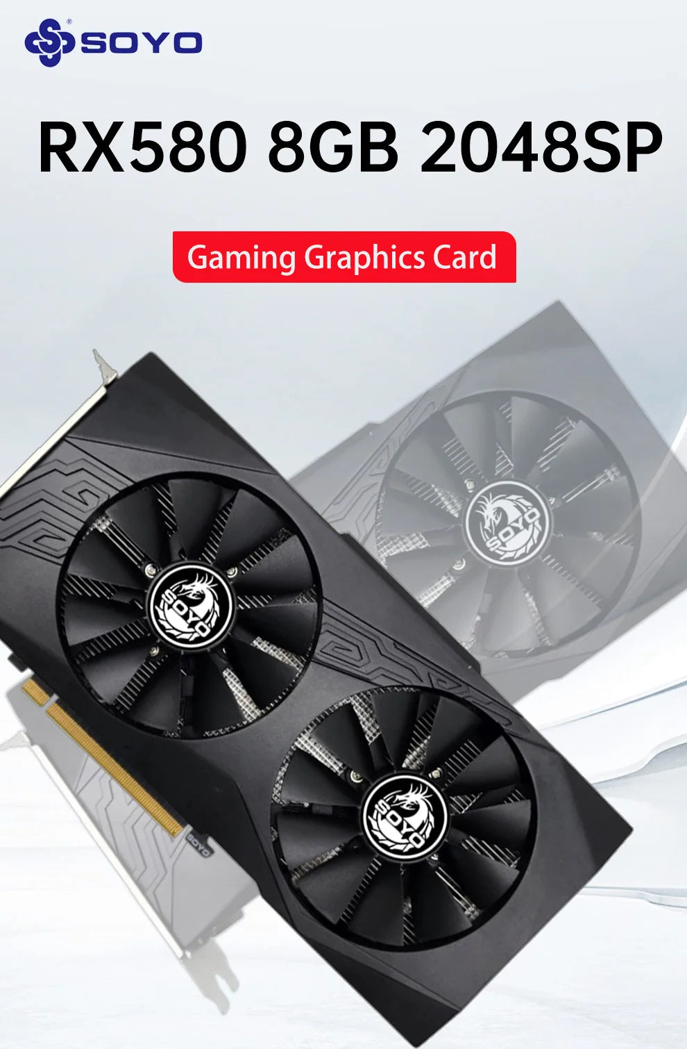Elevate your gaming and multimedia experience with the Soyo Original Radeon RX580 8G Graphics Card for Gaming. This powerhouse is engineered for both gamers and creative professionals, delivering stunning graphics and exceptional performance.