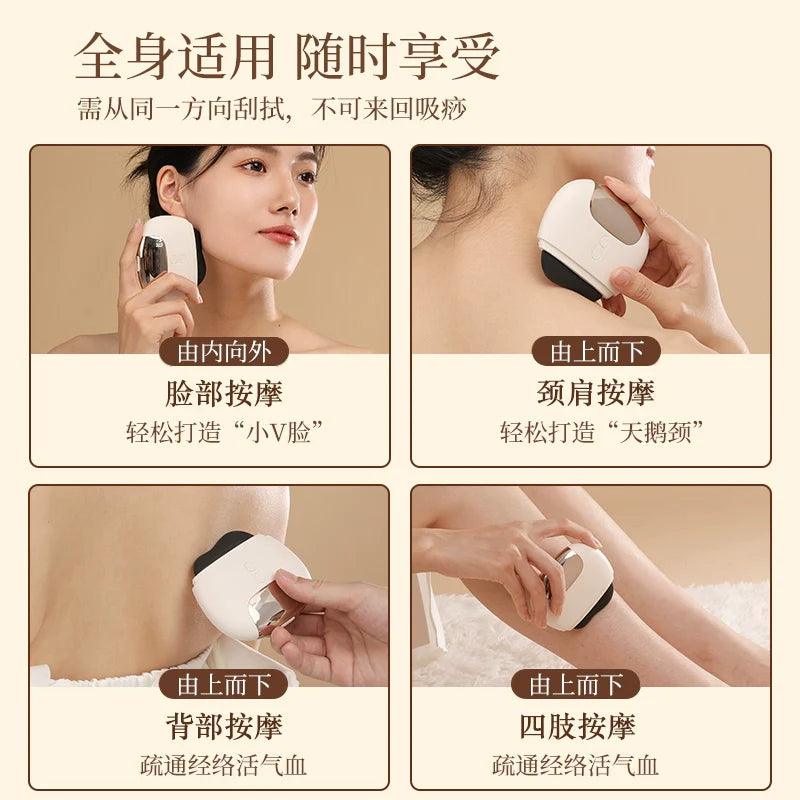 Transform your wellness routine with the Stone Scrapping Plate Heating Electric Gua Sha Massage Tool. This innovative device combines ancient massage techniques with modern technology, delivering unparalleled relaxation and rejuvenation for your face, shoulders, and neck.