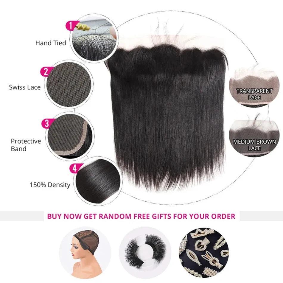 • Complete Wig Kit: Includes 3 bundles of straight virgin hair, a 5x5 lace closure, and a 13x4 transparent lace frontal for a seamless blend.