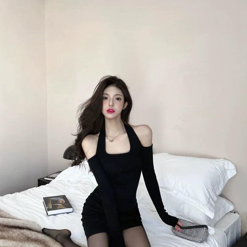 Strapless Knitted Dress: Stylish Halterneck Autumn Comfort