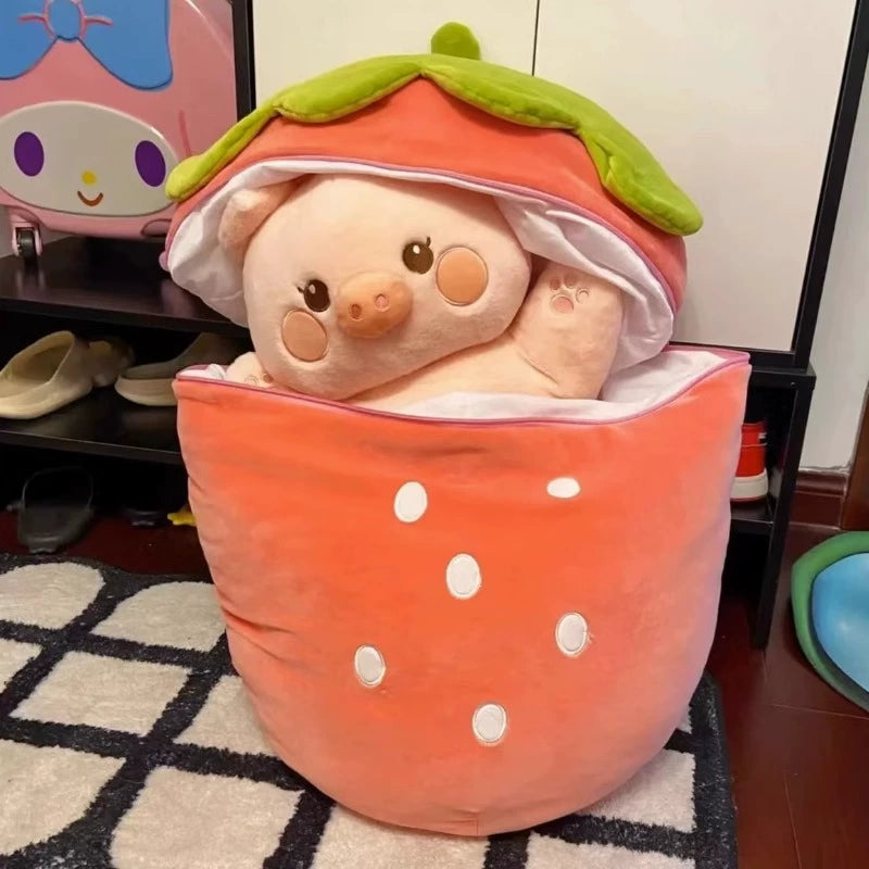 Introducing the delightful Strawberry Rabbit Doll Transformed Bed Pillow Cute Gift, a unique fusion of a cuddly stuffed animal and a cozy bed pillow that enhances your child's bedtime experience! This enchanting doll is designed to provide comfort and joy, making it an essential addition to any child's collection.