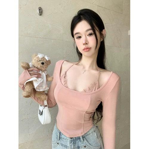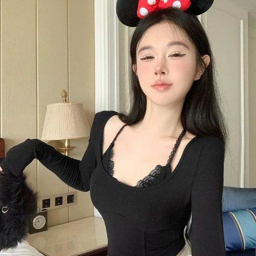 • Chic Details: The intricate lace trim and trendy fake two-piece design add sophistication and flair.