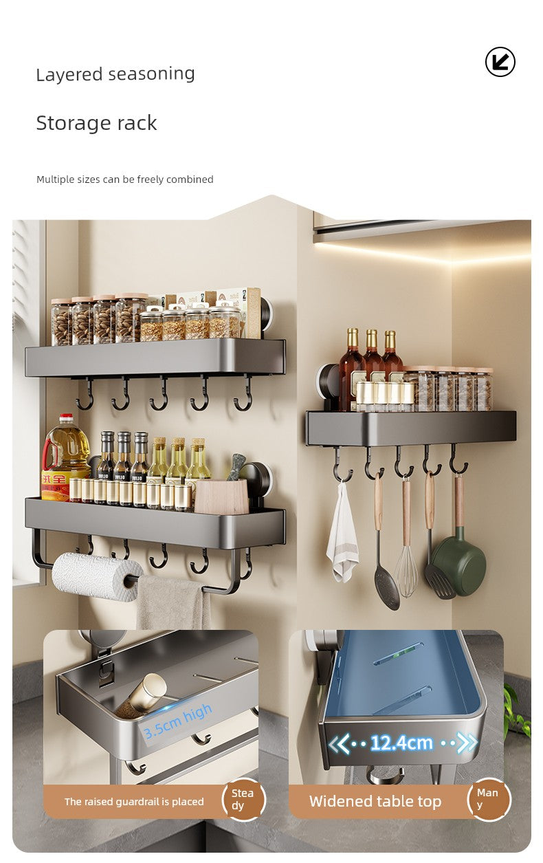 Discover the ultimate space-saving solution with our Suction Cup Punch-Free Wall Condiment Hook Rack Storage. Perfect for modern kitchens, this innovative product combines style and functionality, allowing you to organize your kitchen essentials effortlessly.