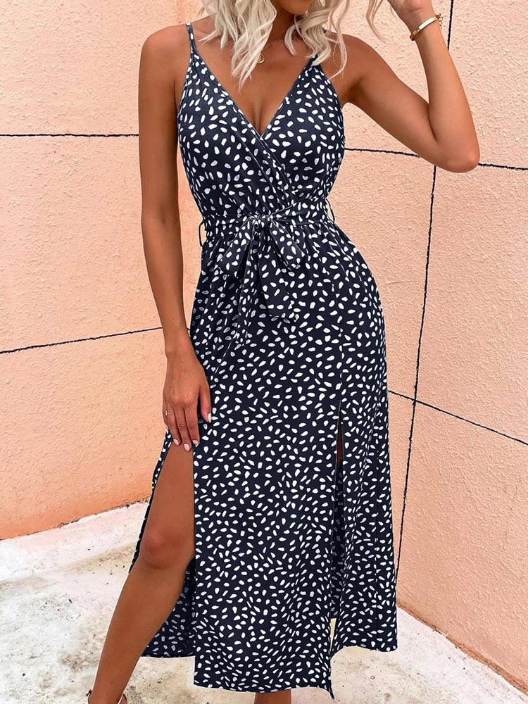 The floral print beach dress is perfect for any occasion, seamlessly transitioning from a day at the beach to a casual evening out. Its elegant backless design and V-neckline add a touch of allure, making it a go-to piece for summer 2024.