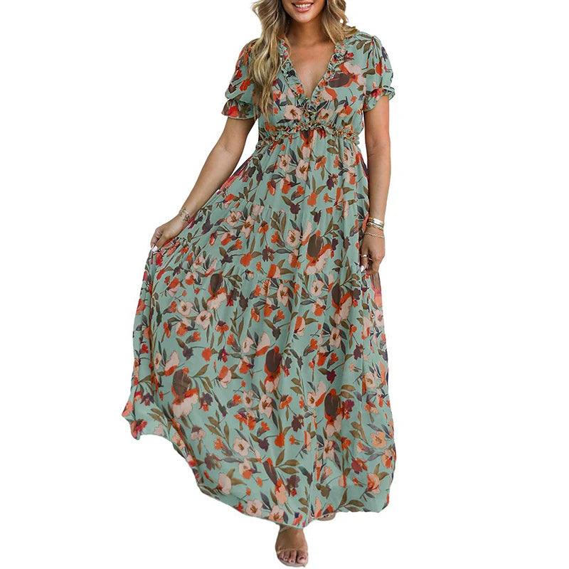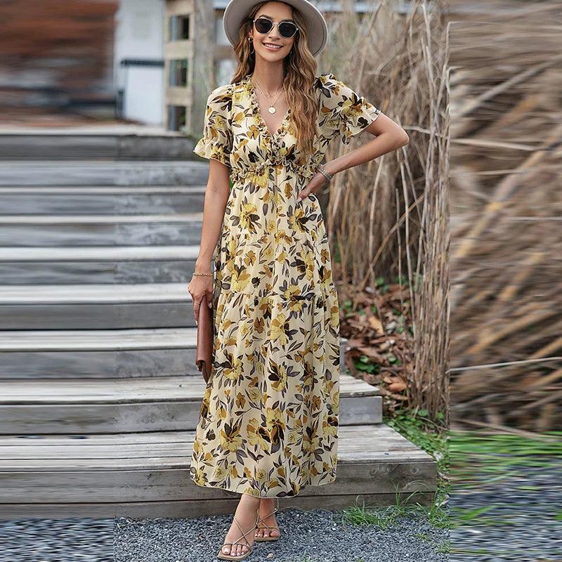 Elevate your summer wardrobe with the Summer 2024 New Arrival Florals Print Short Sleeve Dress. It's not just a dress; it's a statement piece that reflects your unique style while offering the ease and comfort you desire. This dress is a must-have for any summer outing!