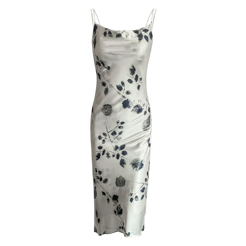 Satin Slip Dress: Floral Fishtail Summer Chic Elegance