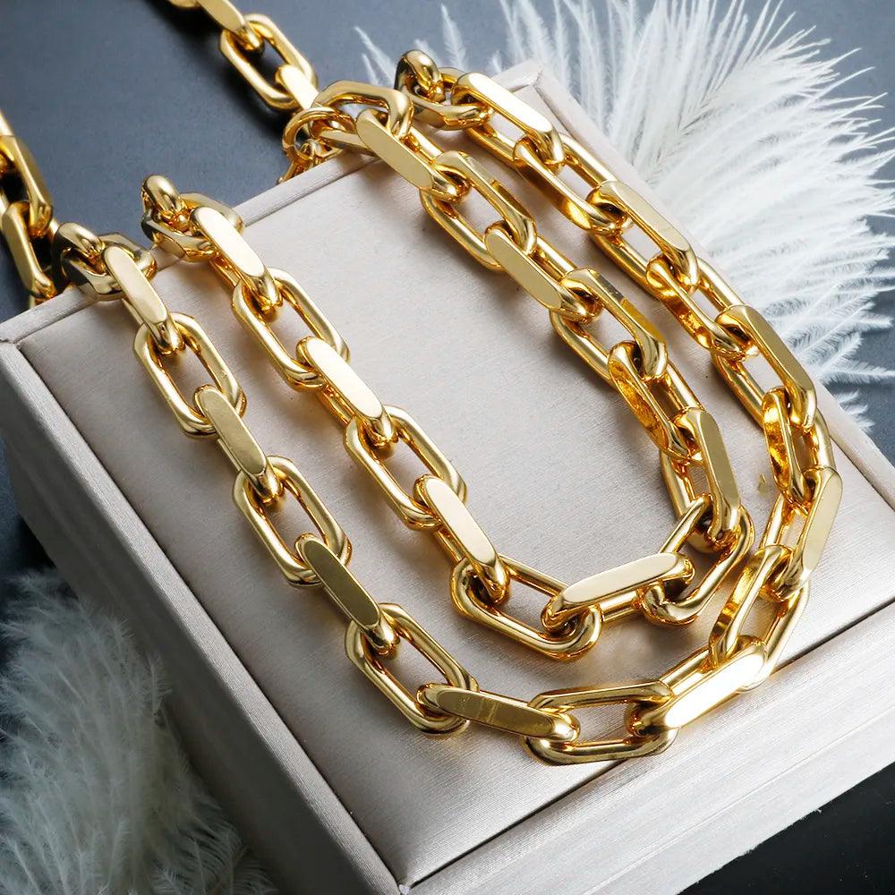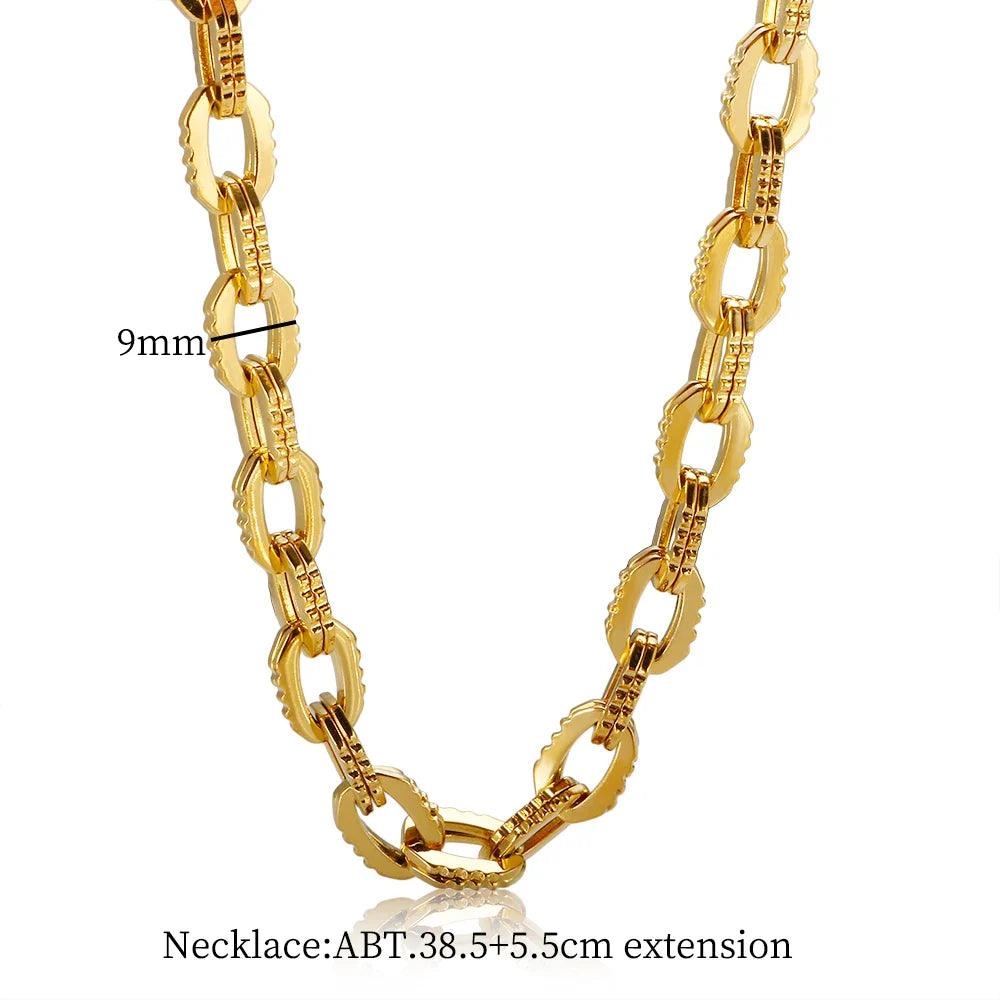Elevate your fashion game with our Thick Stainless Steel Cuban Link Jewelry Set Waterproof Gold Plated Hiphop Style. This stunning jewelry set merges durability with elegance, perfect for those who crave a bold statement piece.