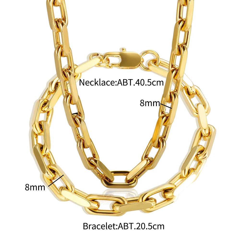 Thick Stainless Steel Cuban Link Jewelry Set Waterproof Gold Plated Hiphop Style